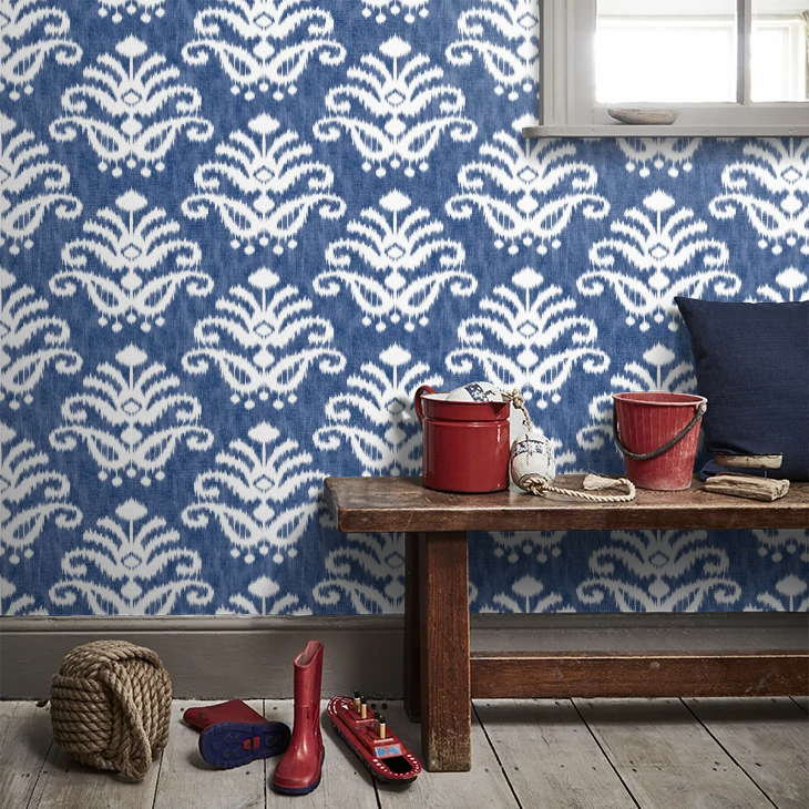 An uplifting paper featuring an all over white ikat design in a chic abstract form.