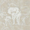 A contemporary toile wallpaper featuring elephants and their offspring camouflaged against a backdrop of exotic foliage. Beautiful for creating a spa-like bathroom.