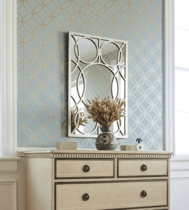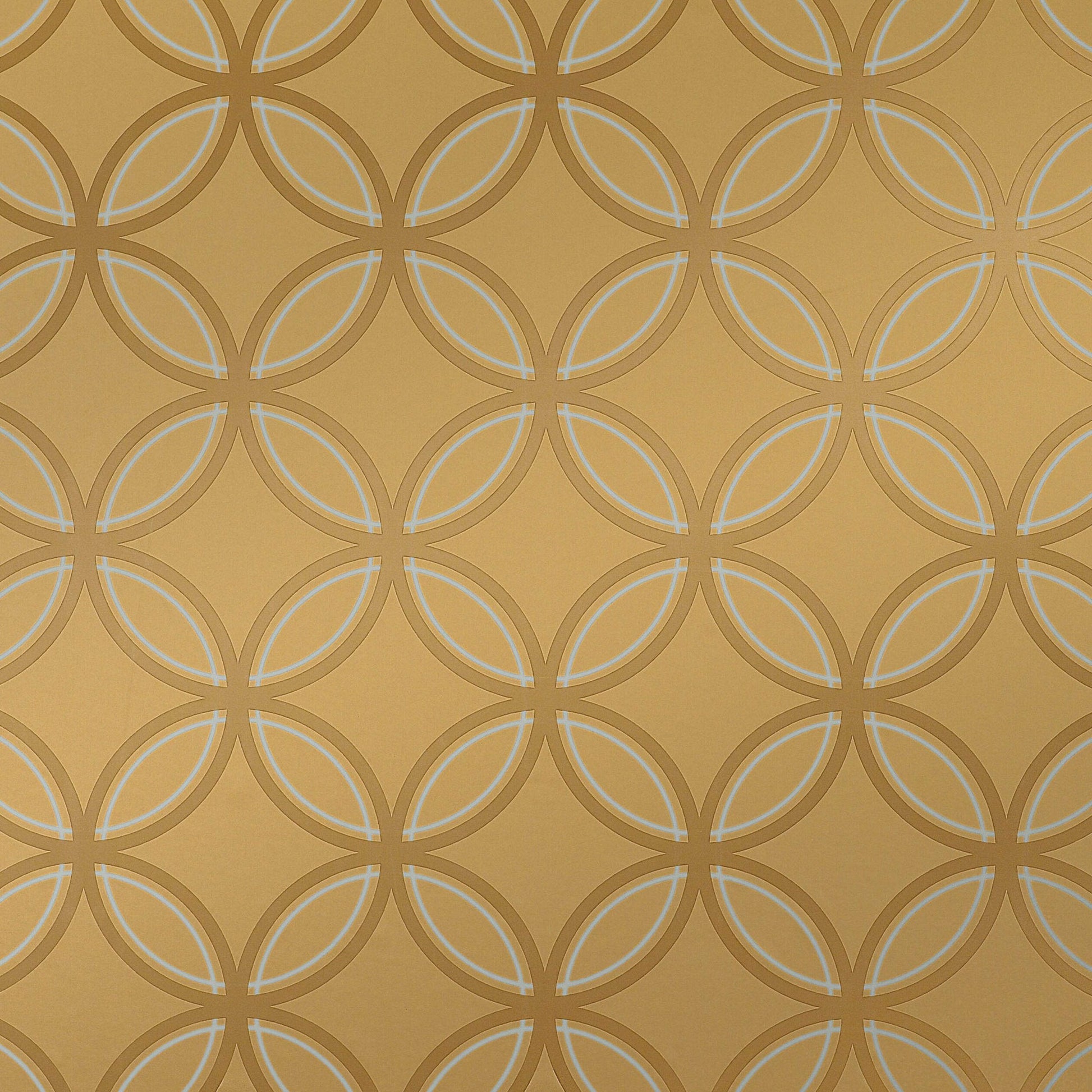 Screen printed with slightly raised ink to imply further dimensions, Kirkos spins with radiance Kirkos Metallic Gold by Thibaut wallpaper.