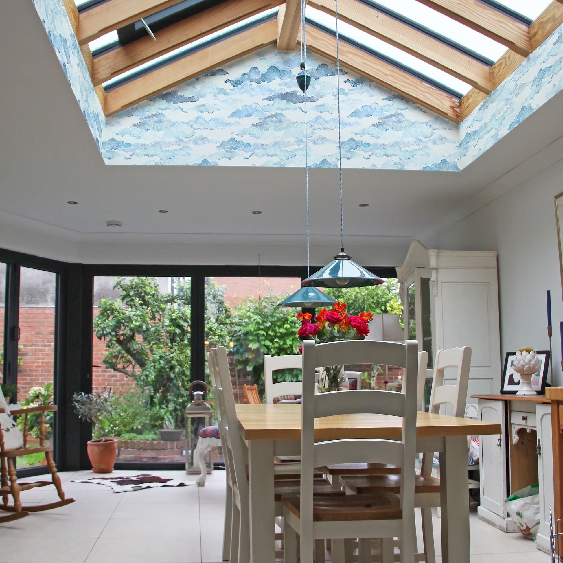 Wake up on cloud 9 with our Les Nuages wallpaper and let the thick, textural hand painted clouds transport you to another world.