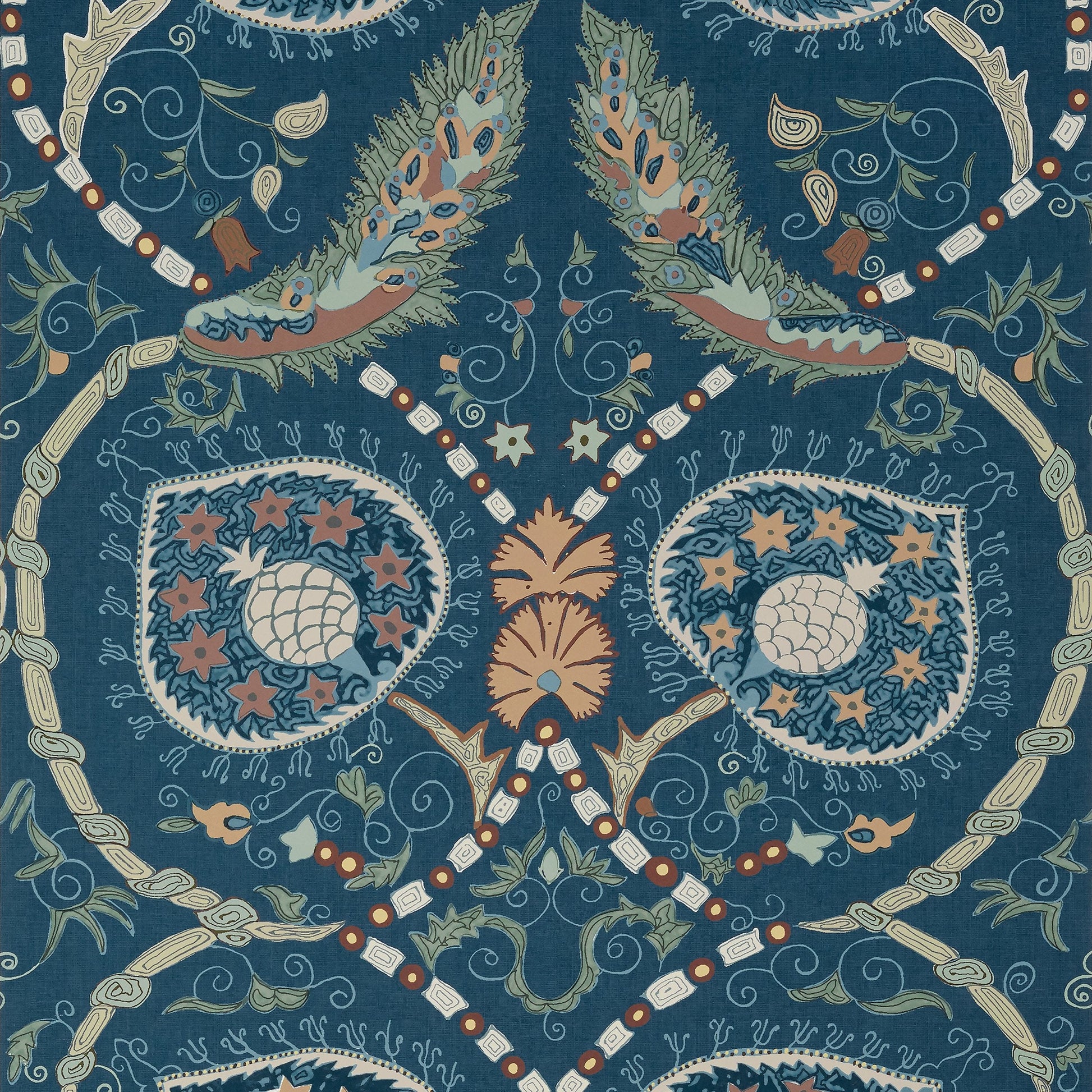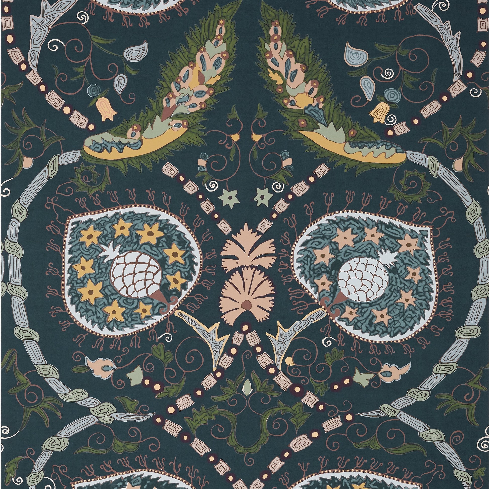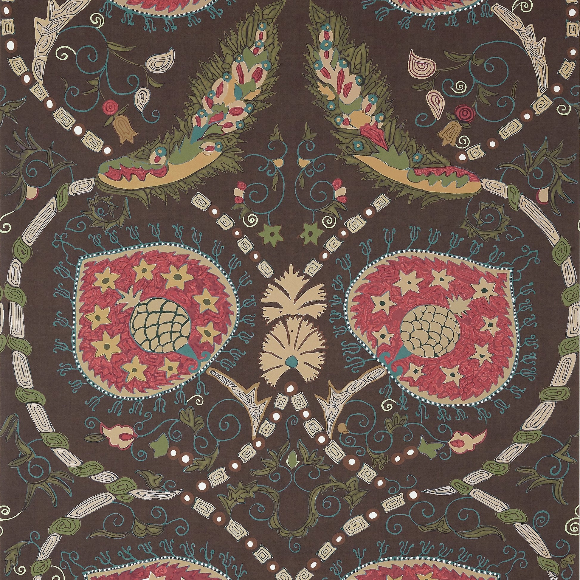 Lewis wallpaper from Thibaut's Mesa collection is a captivating design inspired by 19th-century hand-embroidered Suzani patterns. Treasured by nomadic tribes in Tajikistan, Uzbekistan, and Kazakhstan, these intricate textiles were admired for their stunning decoration and exceptional craftsmanship. This print brings a touch of cultural heritage and artisanal beauty to any space.