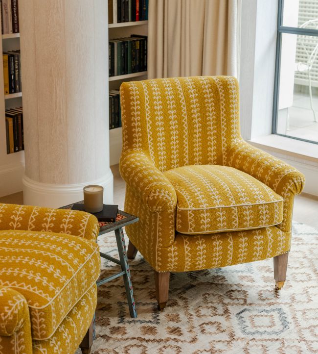 Little Weed is a charming fabric by Kit Kemp for Christopher Farr Cloth. Little Weed, a true gem of a weave, offers a contemporary twist on traditional designs. Its interplay of geometric shapes and intricate details evokes a sense of modernity, making it a versatile choice for both classic and contemporary interiors. Kemp’s thoughtful insight into Little Weed reflects its versatility, “this is a great upholstery fabric. It can be used on both sides to different effect. It is neat and lyrical and fun. It will look so different in a contemporary or traditional setting. It can achieve a lot in a small repeat and it looks like a Little Weed.”