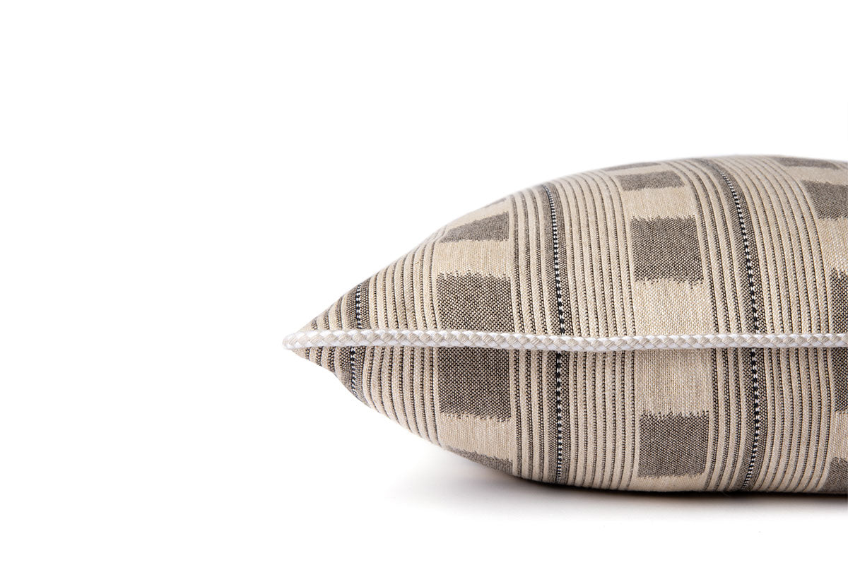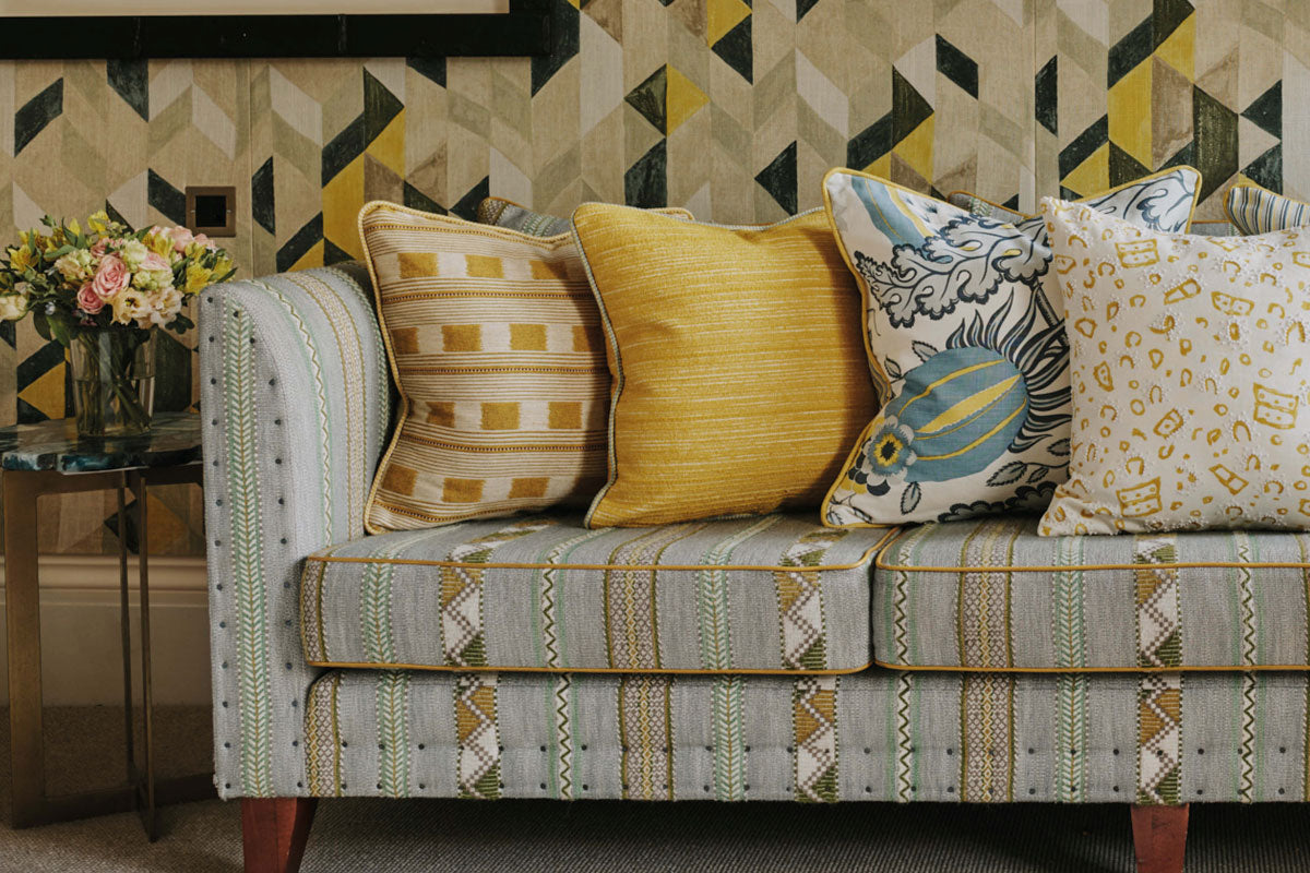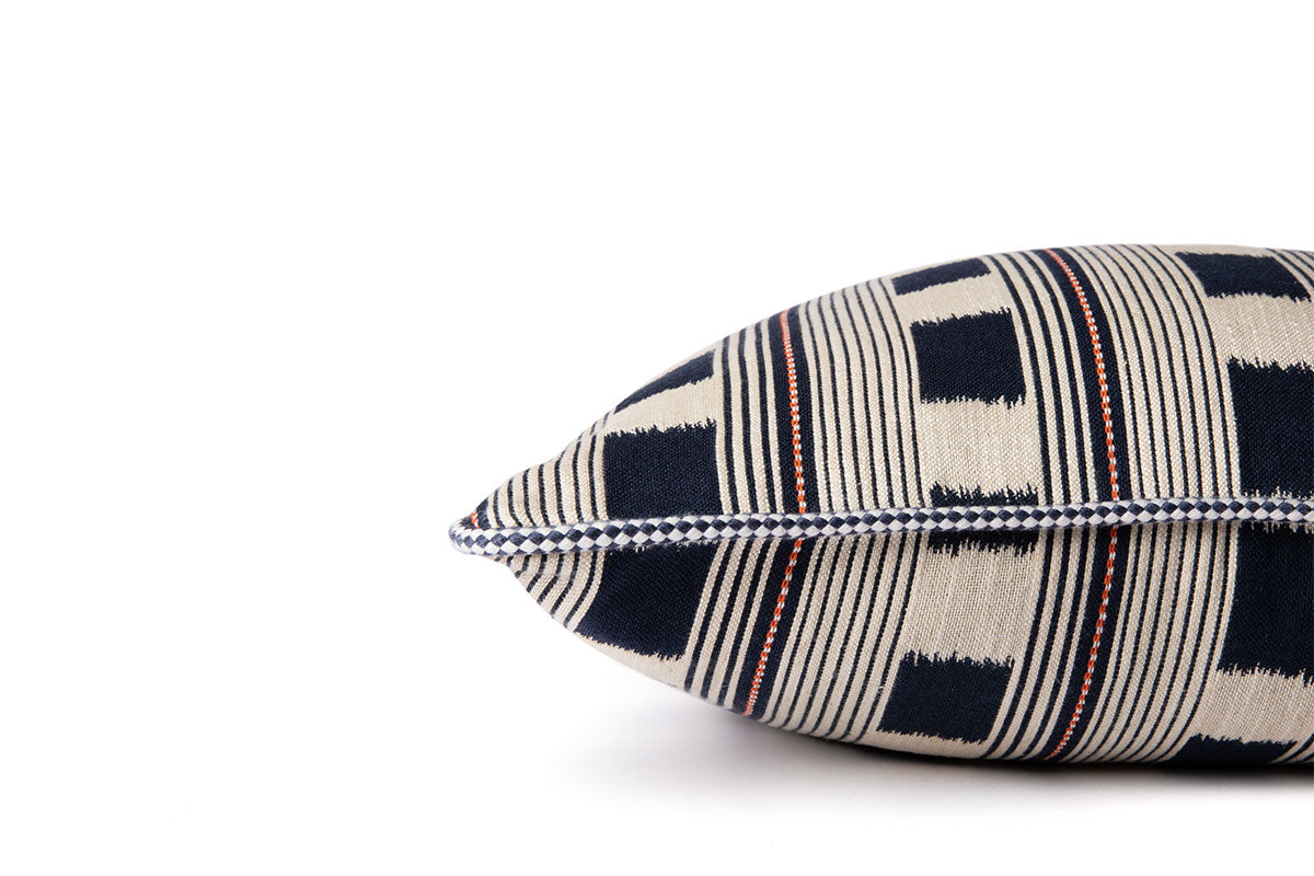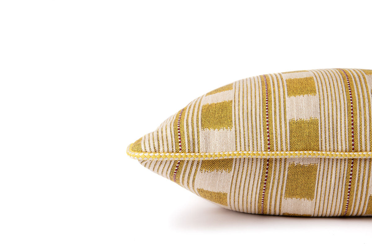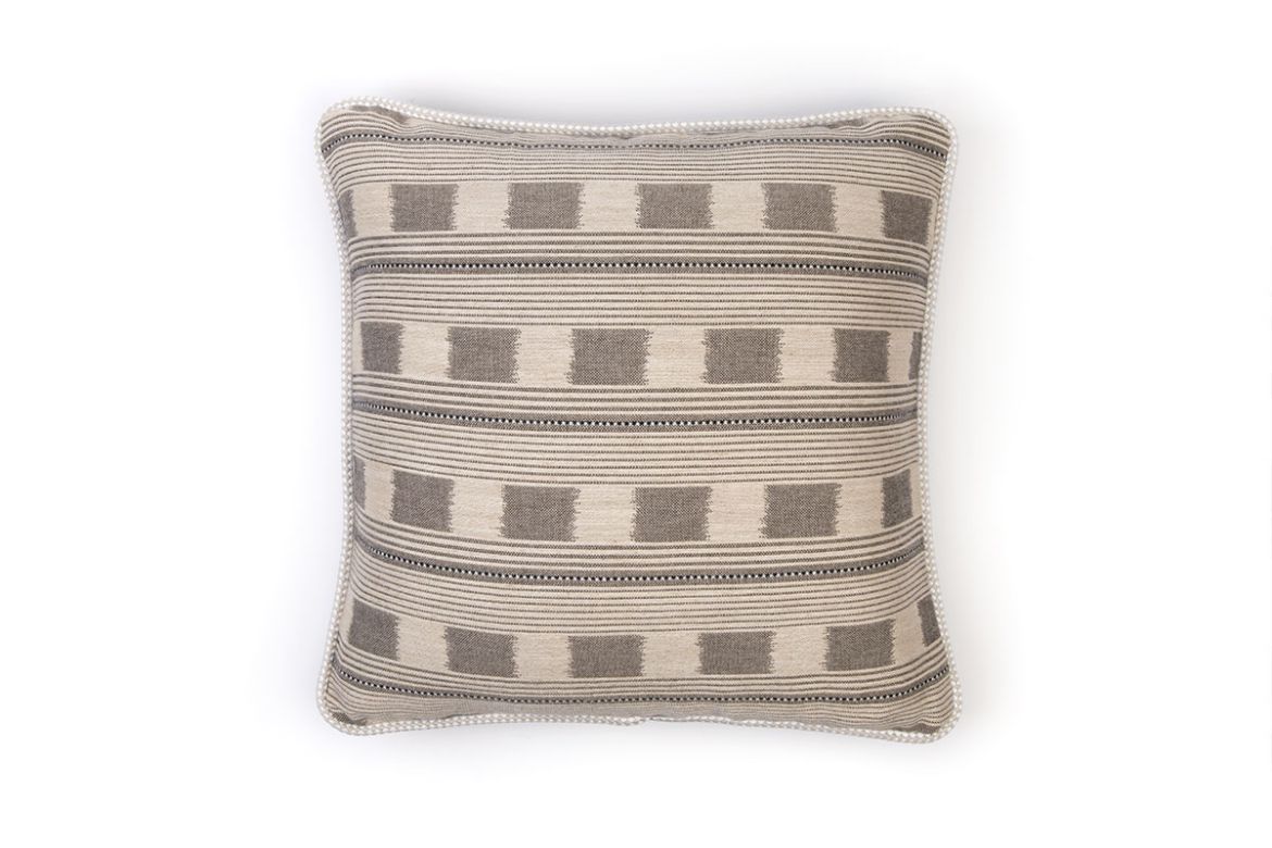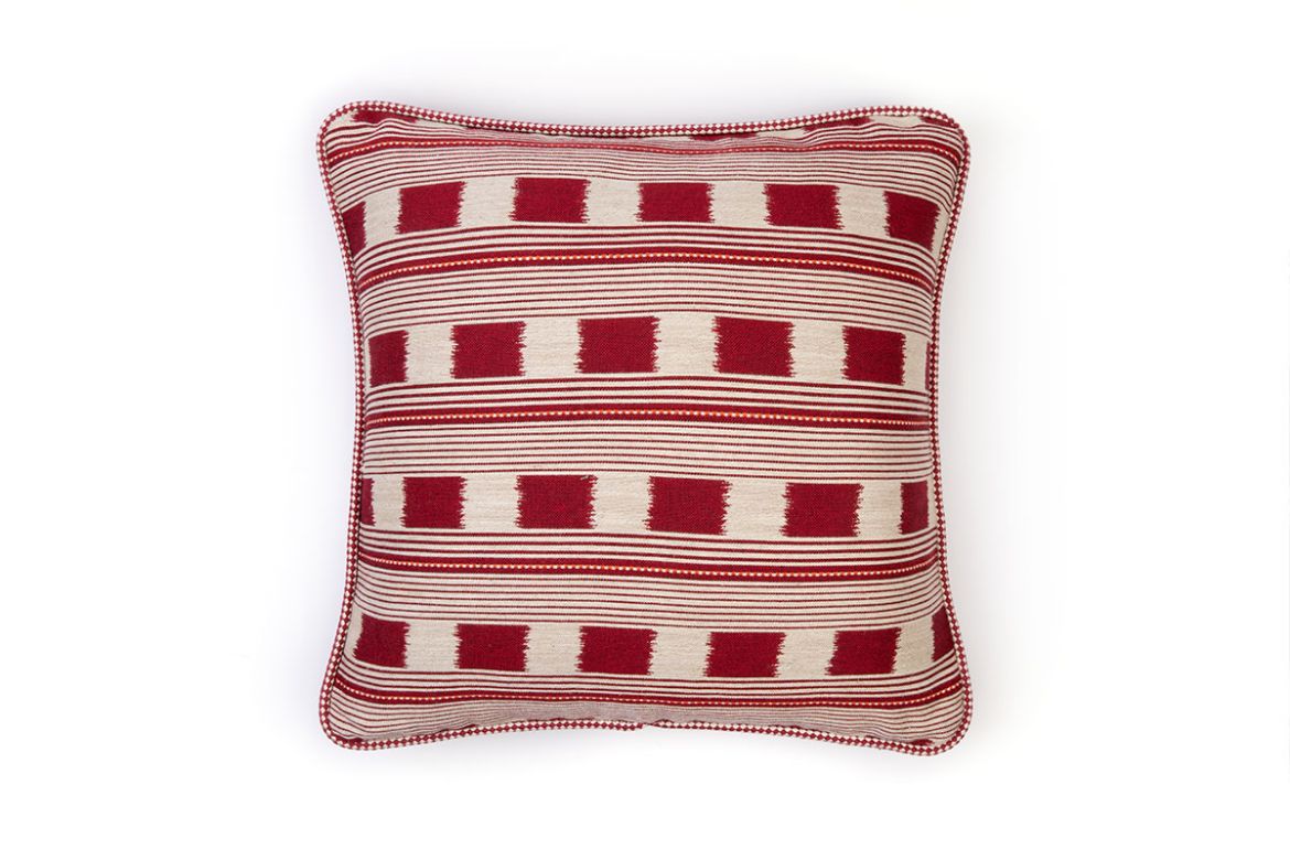 Kit Kemp's ever-popular woven design; a re-working of a classic cotton ticking textile with a dotted stripe alongside repeated squares. Available in Green, Dark Indigo, Lemon, Ruby, Denim and Natural. Material: 43% CO 34% VI 14% LI 7% PAN 2% PES