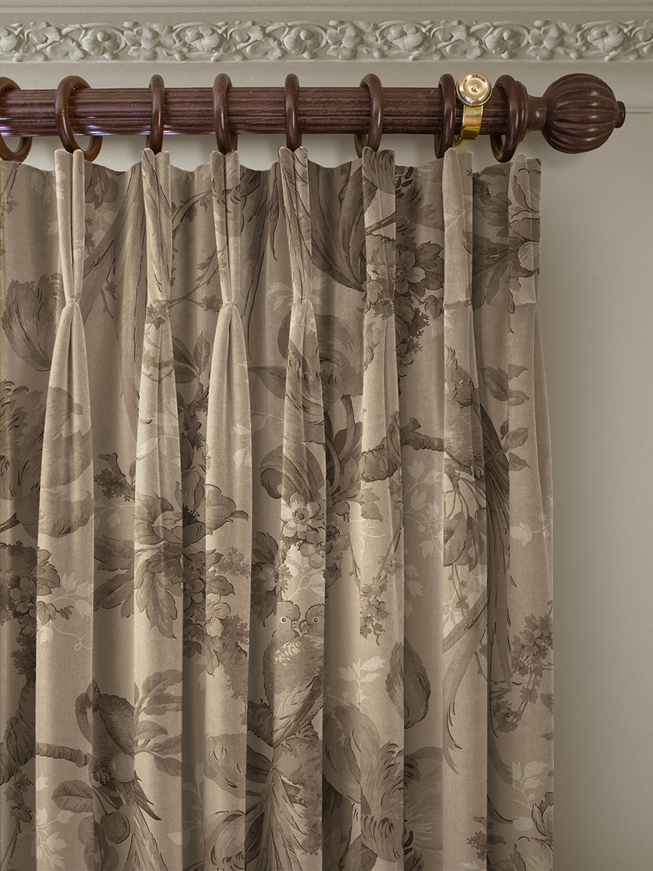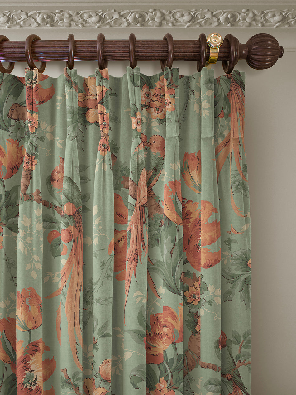 Delve into the captivating world of avian courtships with our exquisite Lovebirds velvet design. Lovingly restored from a long-lost archive print, featuring a beautiful pattern of illustrated birds and majestic blooms to bring tropical romance to any room.