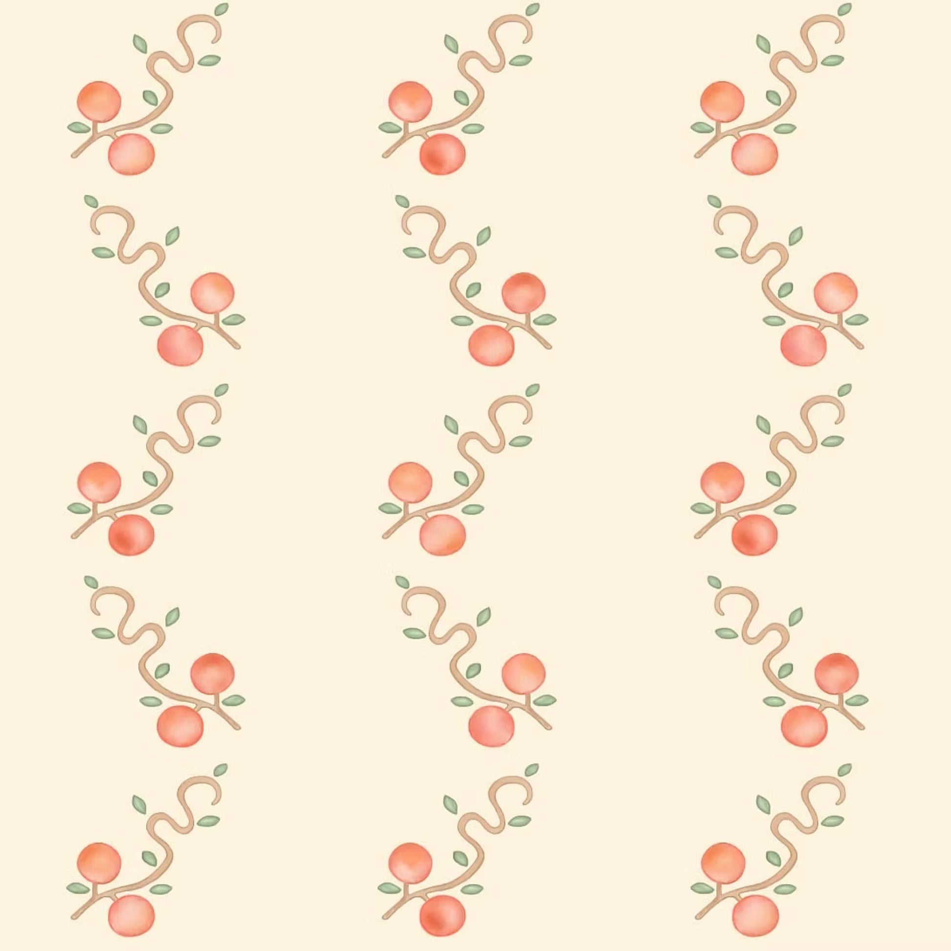 Hand drawn in Ottoline's London studio, the Macadamia wallpaper design features a stylized vine adorned with macadamia nuts in a regular repeat.
