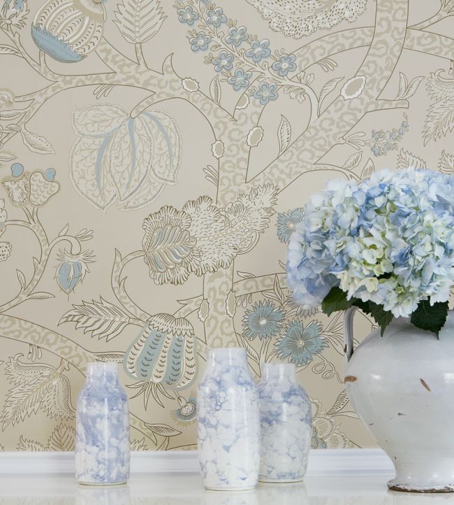 Macbeth features interwined branches and flowers in a large scale Jacobean style design.