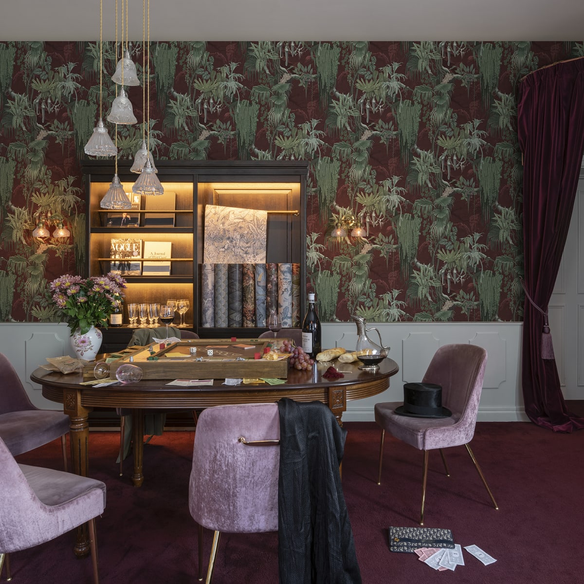 Nothing is quite what it seems in the mythical jungles of Madagascar, home of the chameleon. A suitable animal to inspire this multihued wallpaper, with a hand-painted pattern that shifts as you move through the space. Works equally well in the kitchen as the living room.