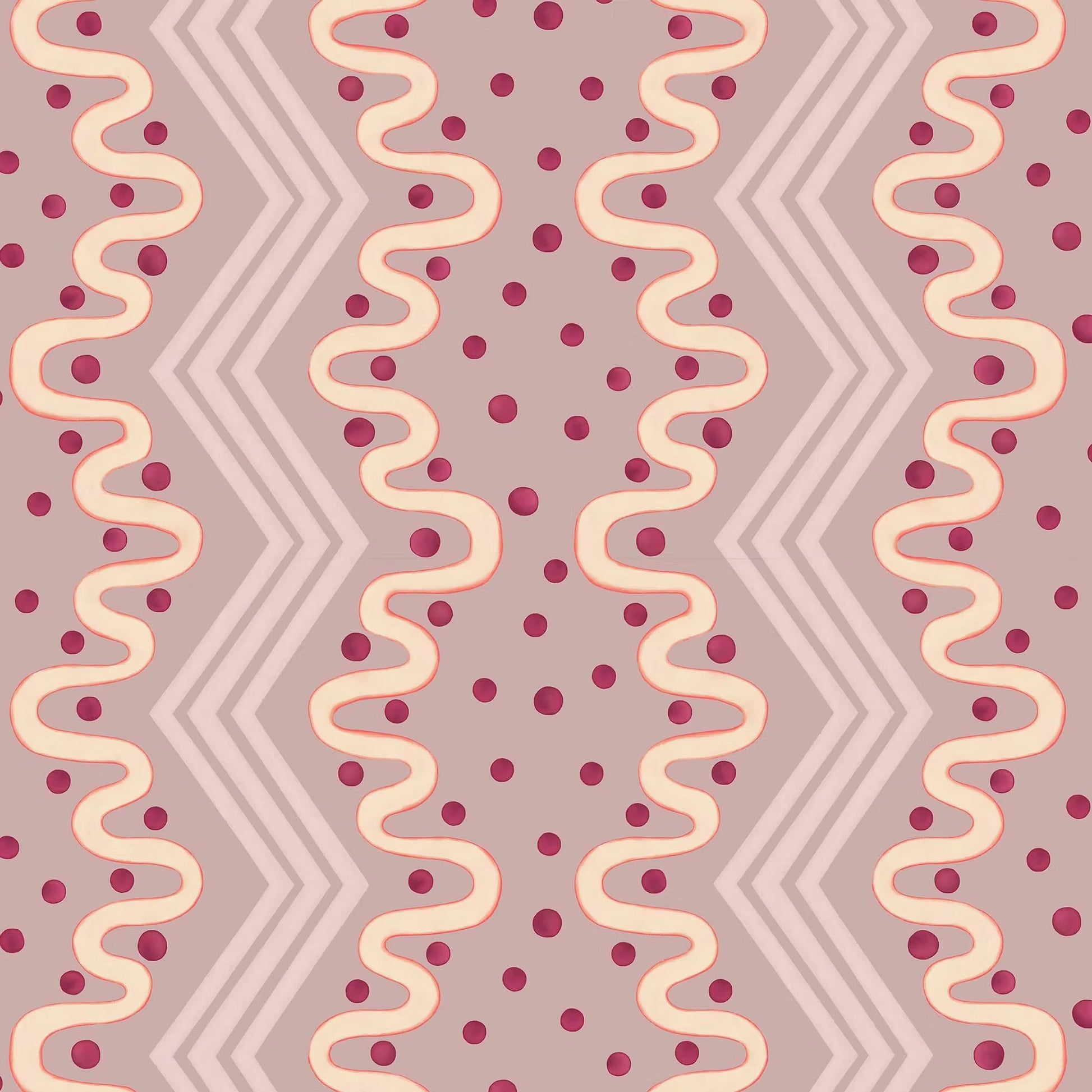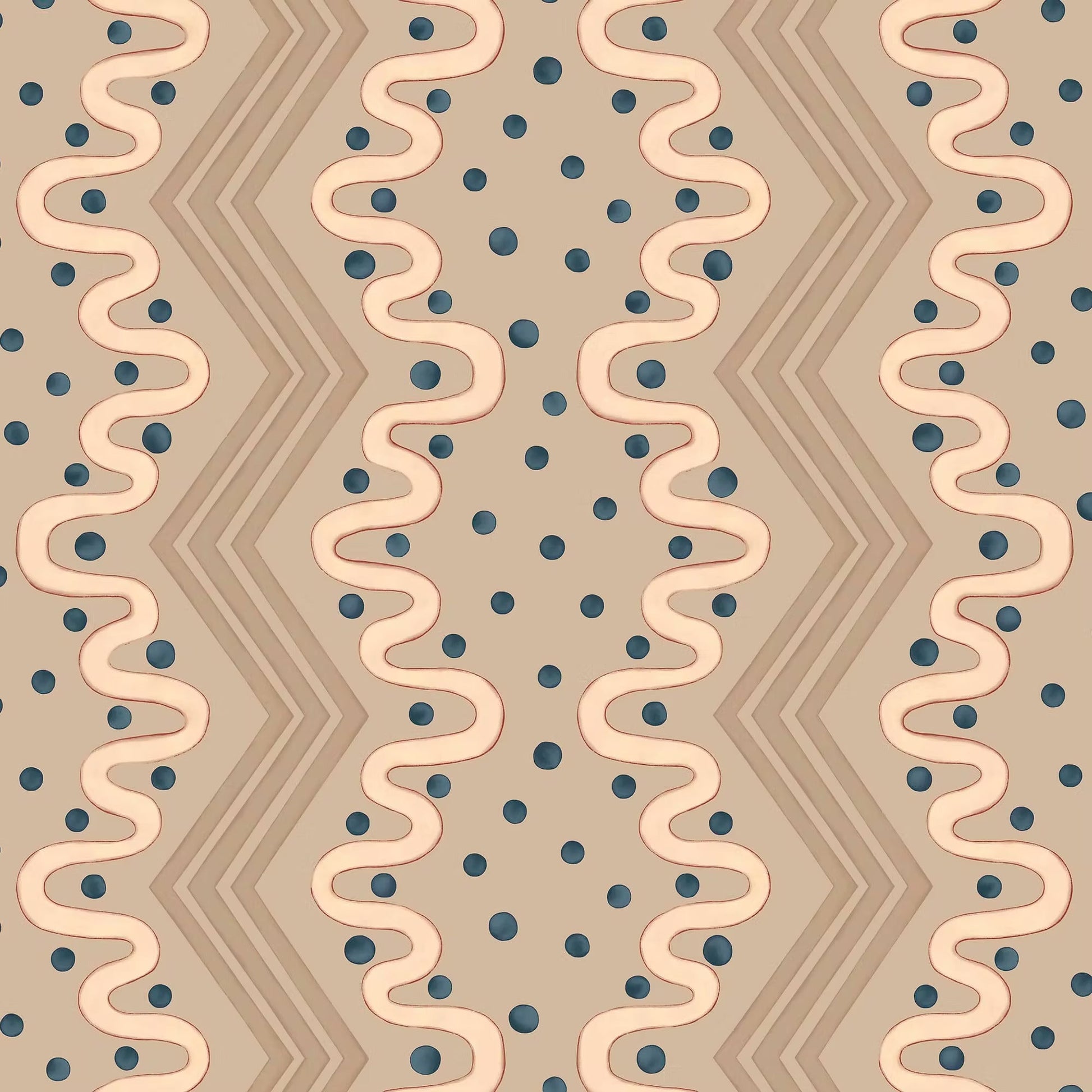 Hand drawn in Ottoline's London studio, the Madame Ziggle wallpaper design features a wiggly zig-zag pattern accompanied by spots.