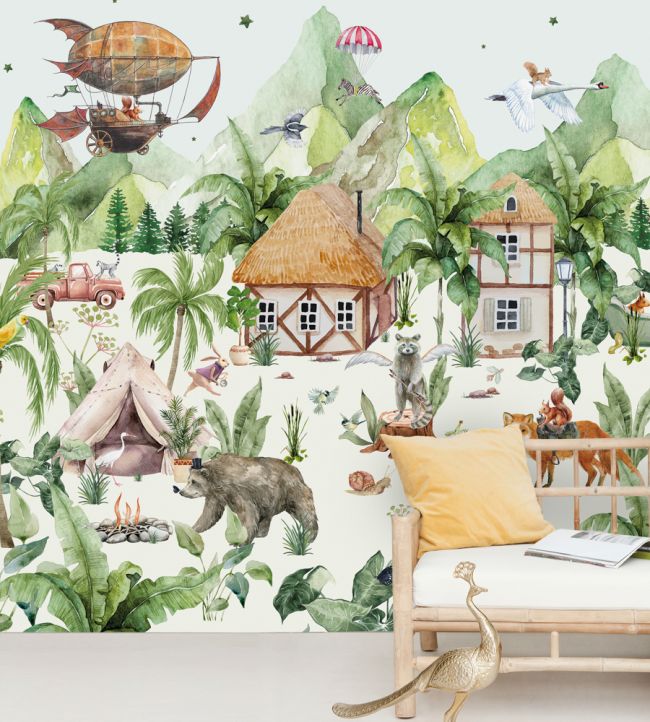 This fantasia mural design shows something different every time you look at it. With bears, birds, racoons and rabbits all acting in a peculiar way! Divided into 4 x 48.7cm drops.