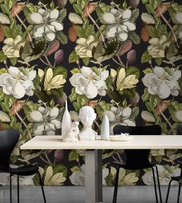 An impressive floral wallpaper with large size magnolia flowers, which can create a wall full of colors and joy.