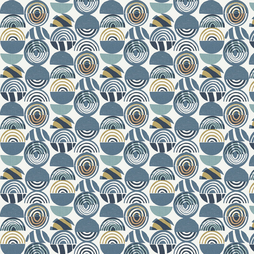 A geometric style design of regularly spaced, patterned and plain circles, within circles and half circles - creates a pleasing 'pop art' effect.