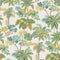A beautiful garden landscape of elegant trees, banana palms and date palms. The design has been painted on craquelure ground, reminiscent of old fresco walls.