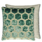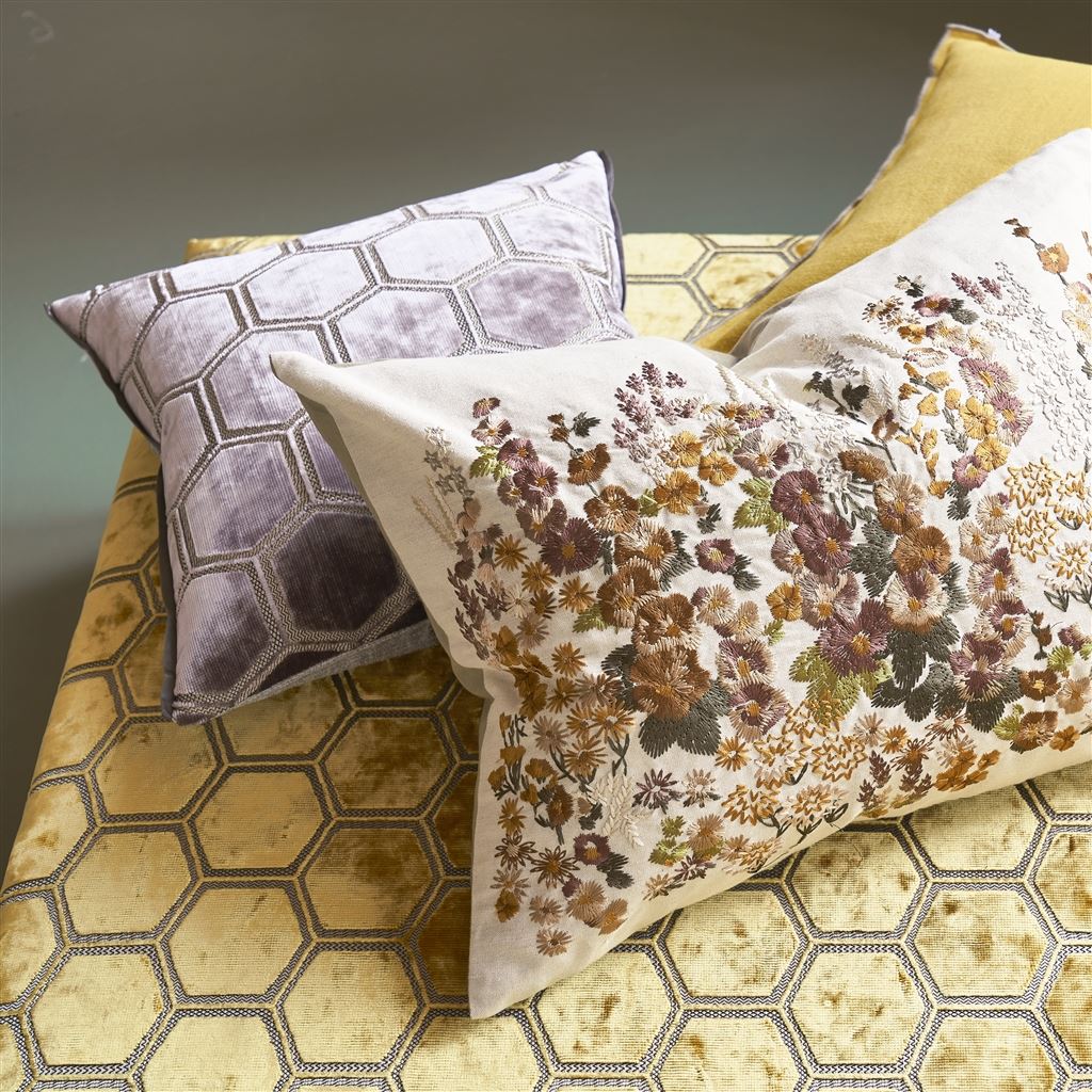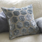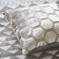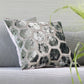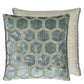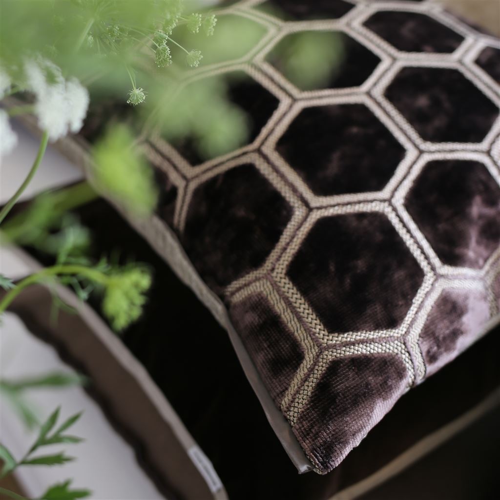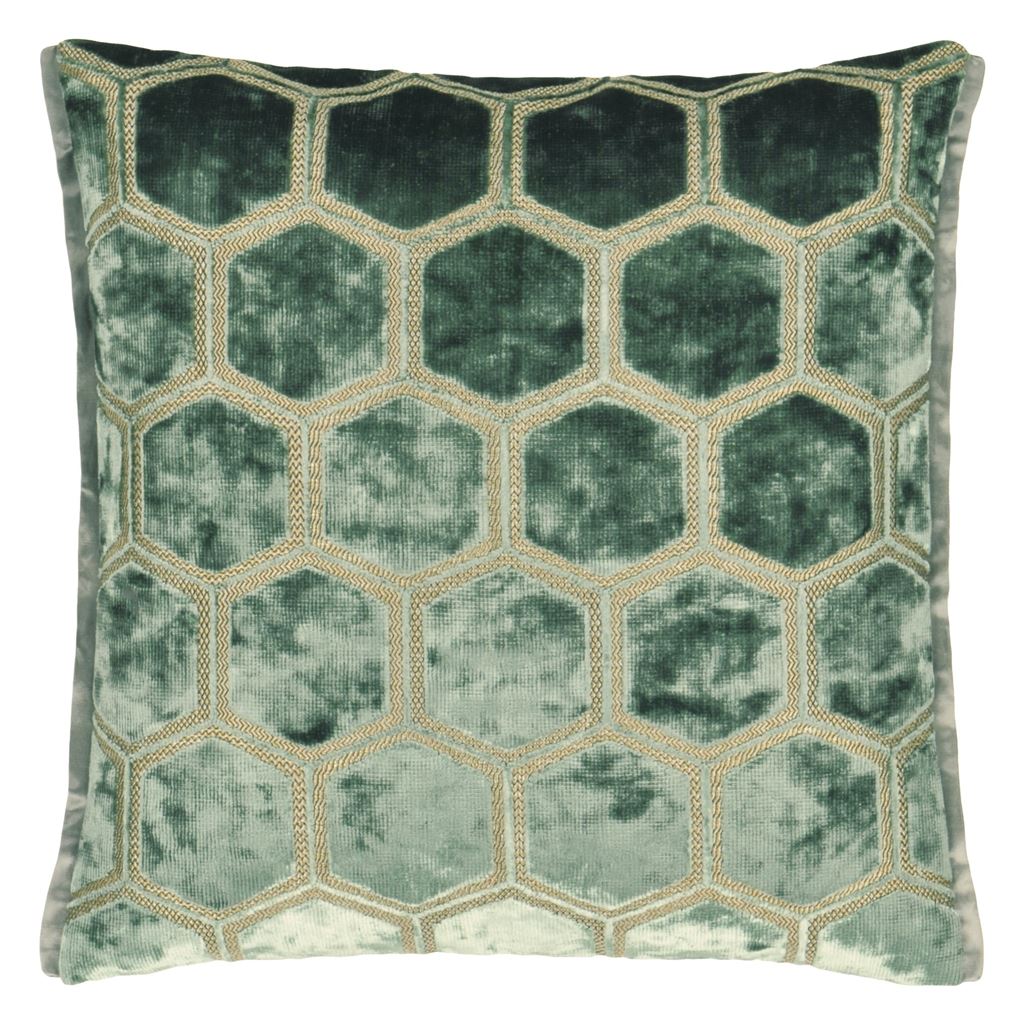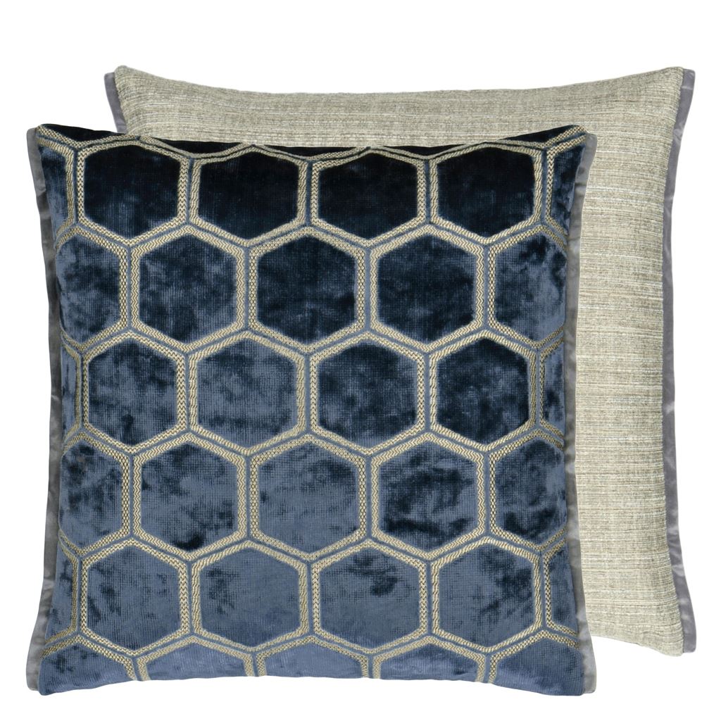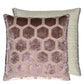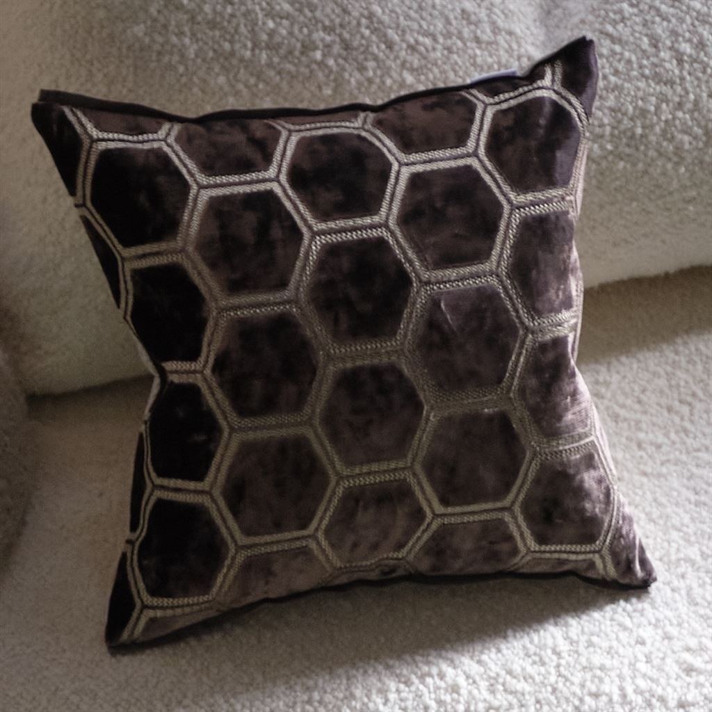 This stylish cut velvet square cushion in oyster white features a bold scale hexagonal geometric with a unique patterned effect in the ground. Elegant and sophisticated, this luxurious cushion is finished with a Kumana reverse in cool marble and a zinc trim. All our cushions come with a luxurious feather pad.