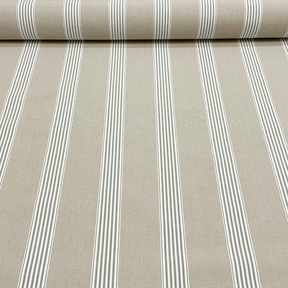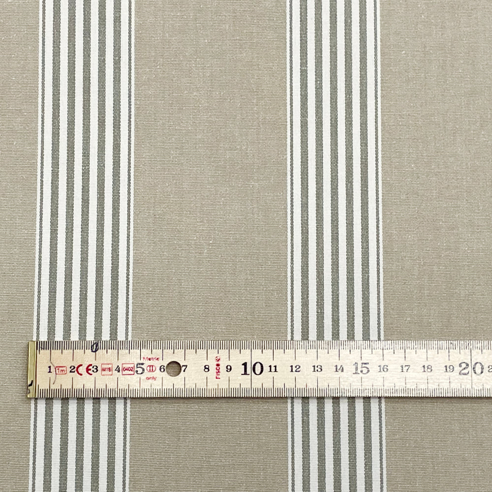 One of our most popular fabrics, this stripe is printed on a luxurious cotton and features a contemporary, multi-striped design.