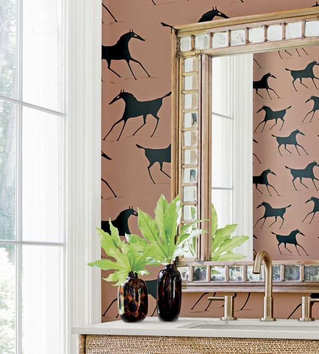 Marlborough Downs wallpaper from Thibaut's Mesa collection is a unique design inspired by the distinctive horses carved into the Marlborough Downs in England around AD 800. This novelty pattern brings an ancient, historical element into the modern home, offering a fascinating connection to the past through its timeless, artistic depiction.