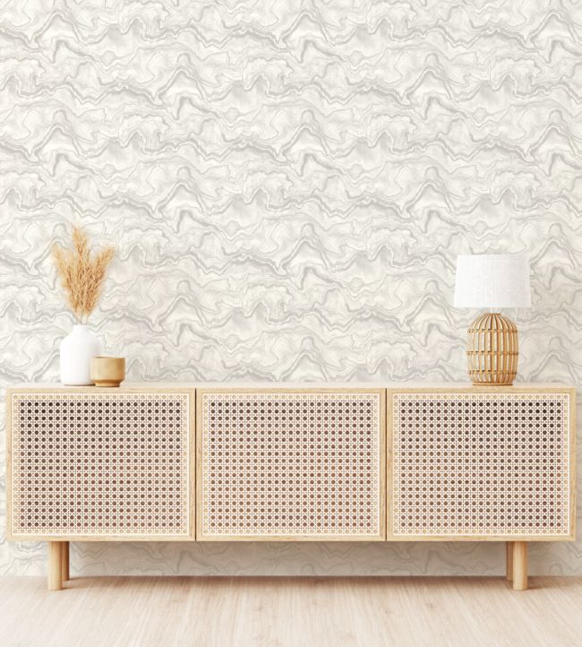 The organic lines within the Meander wallpaper design introduce a sense of movement and rhythm into the decor. Ideal for adding a touch of elegance.