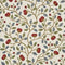 An enchanting design, showing the fruit, blossom and leaves of the ancient Medlar Tree, taken from an early 20th century Aesthetic style wallpaper and reproduced in vibrant and subtle shades.