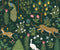 Inspired by the work of early 20th century modern artists, Menagerie is a forest scene complete with stylized flowers, roaming animals, and showy birds portrayed in rich colors.