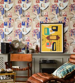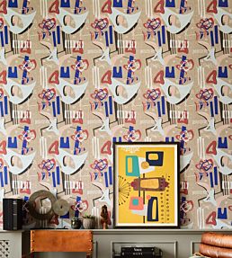 A psychedelic wallpaper design with surrealistic shapes and elements hanging in an imaginary illustrated universe.