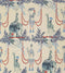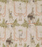 The motifs of zebra, elephants, camels and giraffe stand together in a redraw of a classic French brocade repeat. The muted colours of blue and beige mean this design works both in children's bedrooms as well as in living spaces.