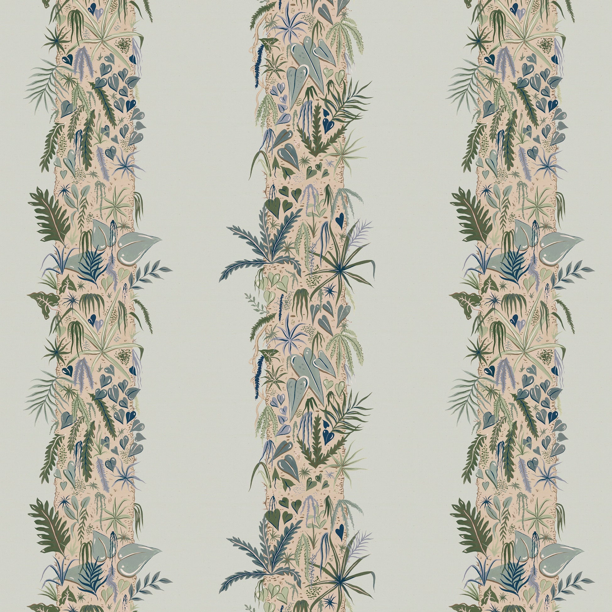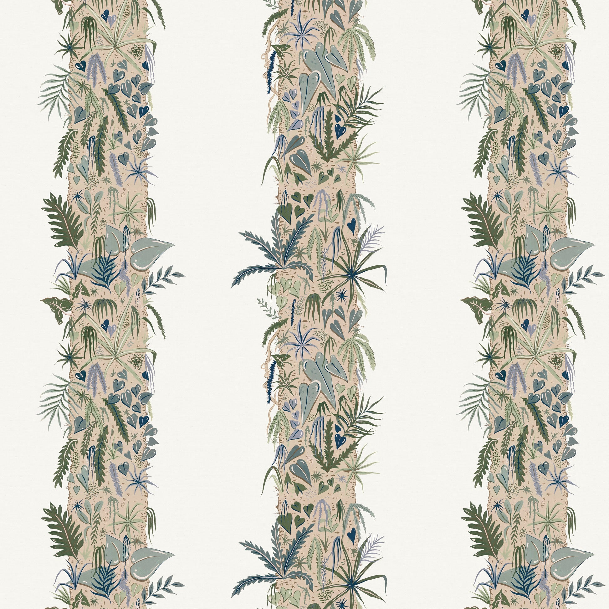 Monte Verde translated in Spanish means 'green mountain' and inspiration for this print comes from the beautiful Monte Verde Cloud Forest in Costa Rica. A cloud forest occurs within tropical mountainous environments where there is consistent cloud cover and nearly 100% humidity throughout the year. This wet environment allowed for eco systems within eco systems. I was totally fascinated by how each tree trunk was completely inhabited by hundreds of smaller specimens of and that’s was the starting point for the design.
