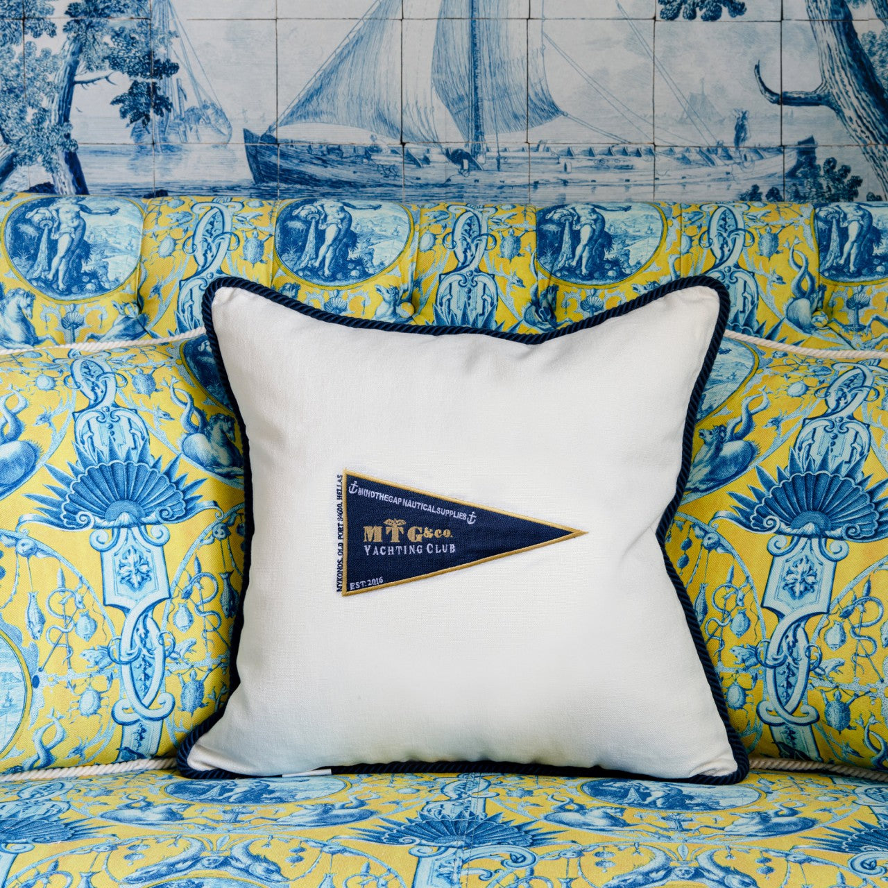 MTG YACHTING CLUB Linen Embroidered Cushion