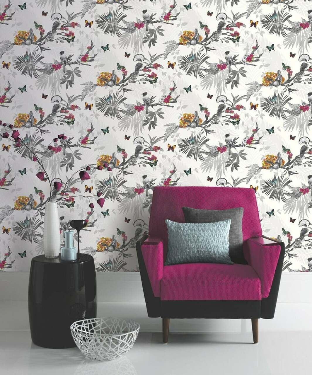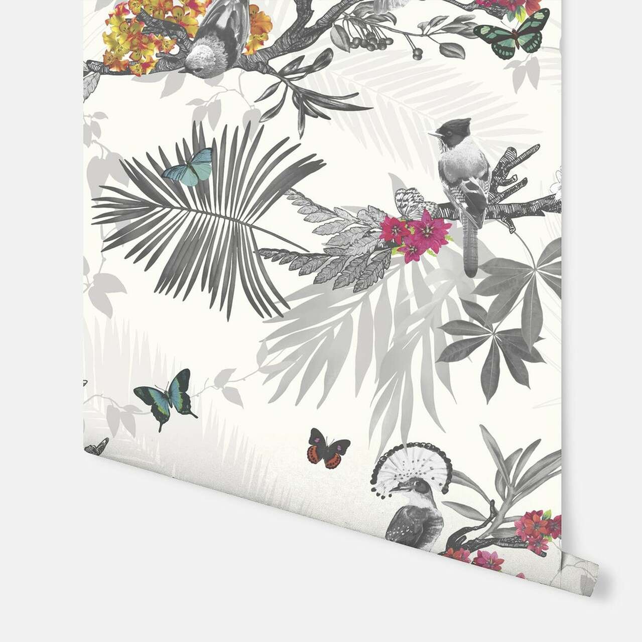 A mystical woodland inspired creation from the Imagine Enchantment collection by Arthouse. Exotic birds and foliage highlighted with a shimmering gel glitter, shown here in a White and multi colourway.