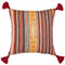 A vibrant and colourful design with varying vertical stripes and a central motif drawing the eye across the assortment of line patterns and hues. NEYSHABOUR is reproducing an old Anatolian kilim pattern mixing a rich colour palette and a heavyweight woven blended fabric. The red cotton tassels give the cushion a refined silhouette while the duck feather filling complements it. Composition: 64% CO, 27% VI, 9% LI, Finishing: Red tassels