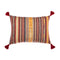 A vibrant and colourful design with varying vertical stripes and a central motif drawing the eye across the assortment of line patterns and hues. NEYSHABOUR is reproducing an old Anatolian kilim pattern mixing a rich colour palette and a heavyweight woven blended fabric. The red cotton tassels give the cushion a refined silhouette while the duck feather filling complements it. Composition: 64% CO, 27% VI, 9% LI, Finishing: Red tassels