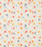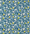 A floral trail fabric design, characterised by geometric flowerheads & leafy branches.