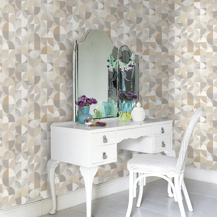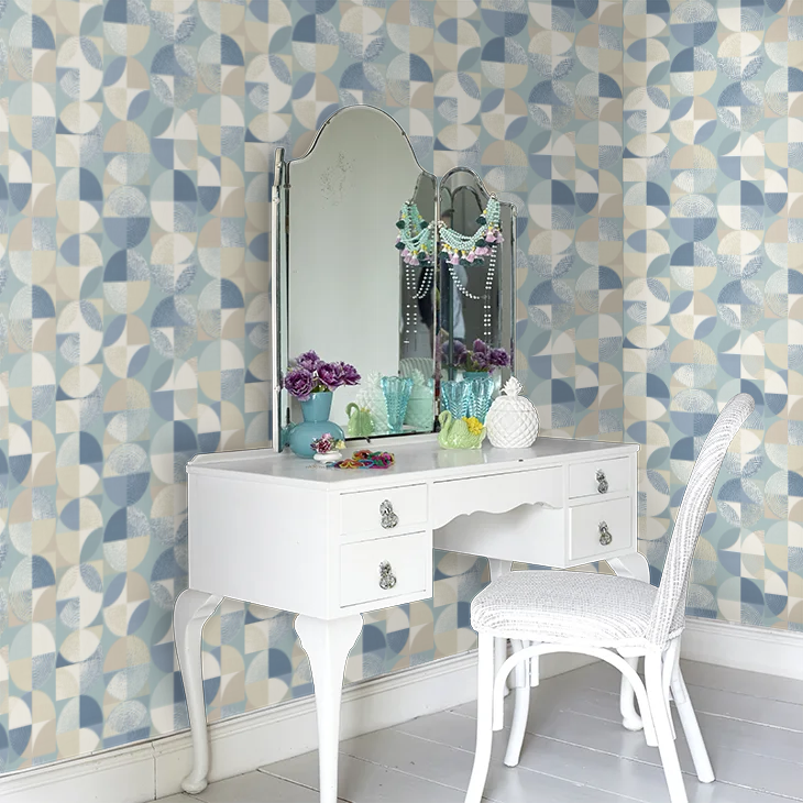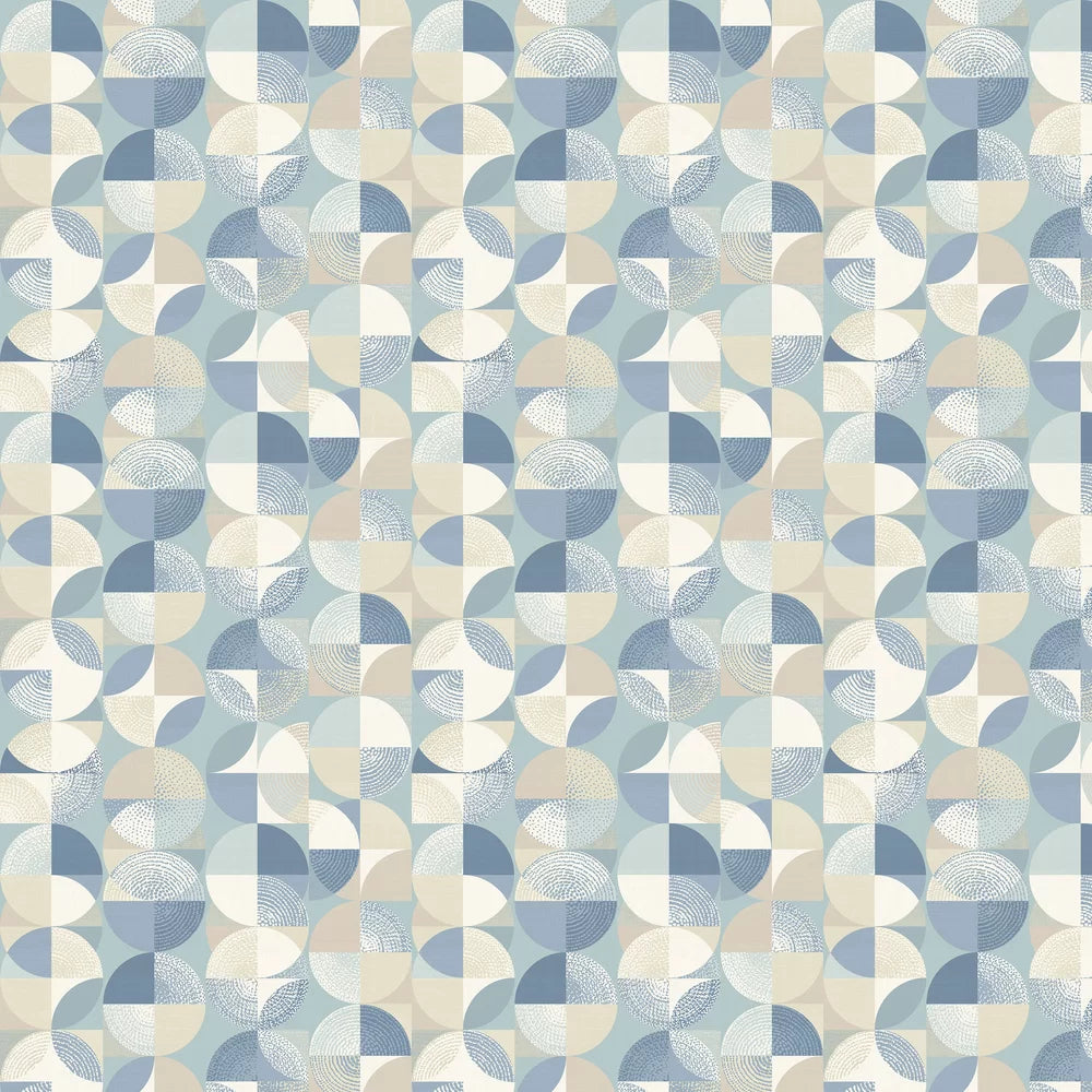 Quirky and kinetic, Orb’s small-scale design of overlapping circles is almost like looking through a kaleidoscope. Divided in to quarters and irregular shapes, the motif seems to dance and move across the wall. With a linen texture that runs throughout, this wallpaper is an excellent colour carrier.