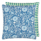 Our range of indoor/outdoor cushions are the perfect way to add a decorative touch whilst remaining totally practical. Delving into the Designers Guild archives this stylish square outdoor cushion features Shaqui - a classical pattern in rich cobalt blue paired with Jaal a small scale stamped motif in emerald and cobalt tones and finished with a Lovina canvas trim in chalk. Digitally printed onto a water repellent soil stain mould and mildew resistant canvas which is also machine washable. All our outdoor cushions come with a practical hollowfibre pad. Material: 100%Pc