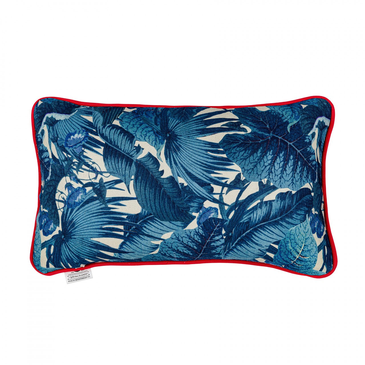 A beautiful and delicate pattern, PARADEISOS shows a botanical design reminding of the seaside vibes coming from a remote Mediterranean island. Made of two patterned sides, the cushion is finished with red piping and an embroidered maritime crest on the lower right corner. Complete with filling made of natural feathers. Composition: 100% Linen