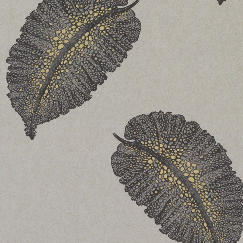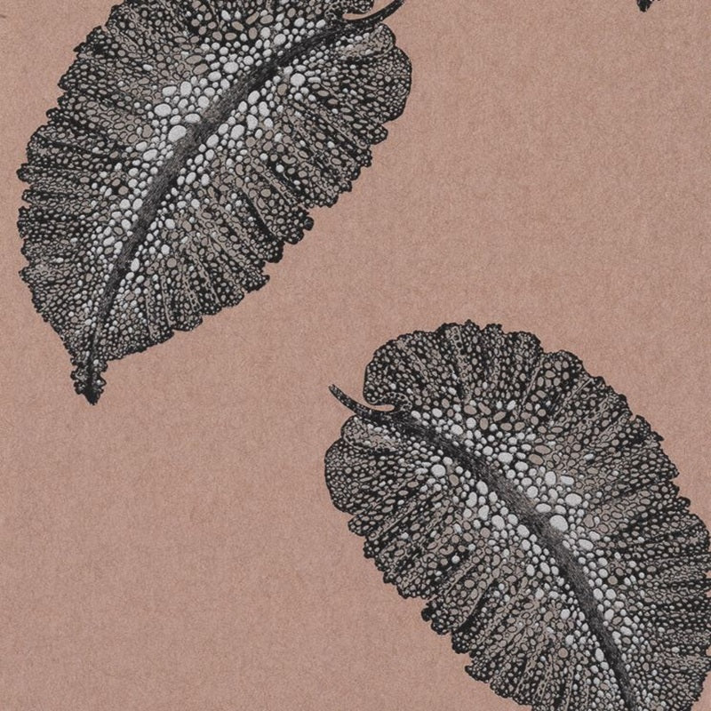 A large stylised leaf enlivened with metallic on a contrasting plain ground.