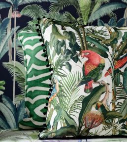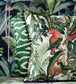 A tropical style design with beautiful parrots and palm leaves inspired by the fauna of Brasil.