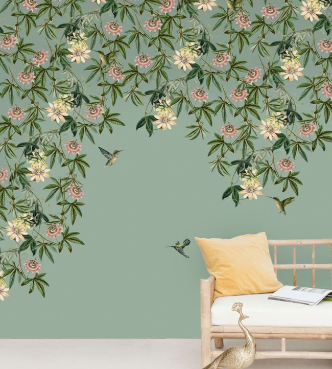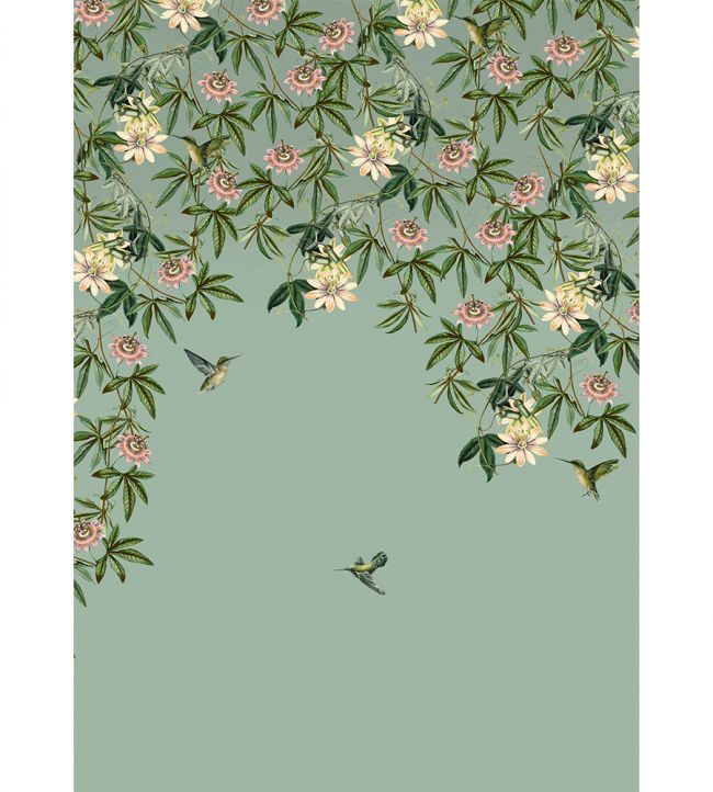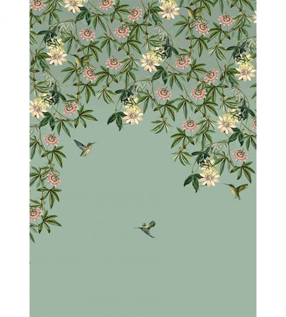 Humming birds hover around the vines of trailing passion flowers in this elegant mural design. Printed on non-woven paper. Divided into 4 x 48.7cm drops.