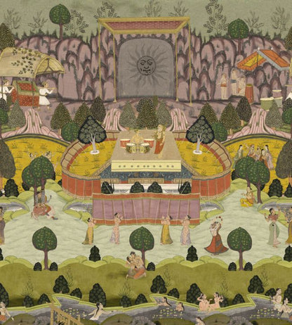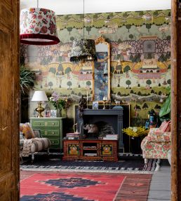 Festival goers swim and immerse themselves in nature, while the melodies continue to float across the air in Mind The Gaps Peace And Music print. Fine detail depicts a setting which is calm and full of happiness, where music acts as a universal language bringing everyone together as one.