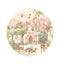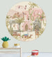 A welcome oasis featuring colourful camels, big cats, monkeys and birds. This non-woven circle wall mural comes in shades of pastel pink, with pale green to create a warming addition to your interior.