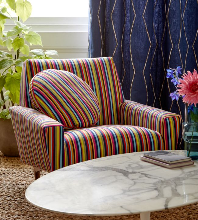 A riot of multicoloured stripes woven in a cotton sateen makes for a fabulous upholstery fabric it is named for the seaside town on the Bay of Bengal.