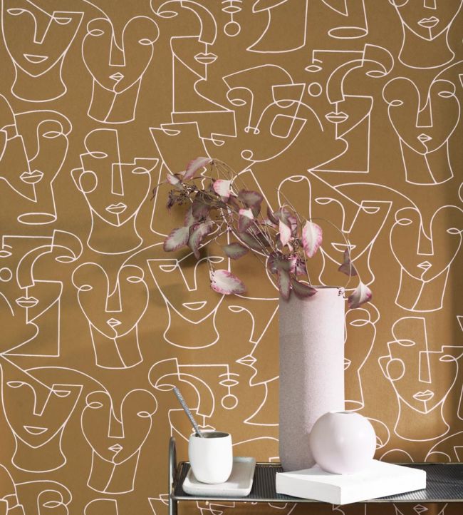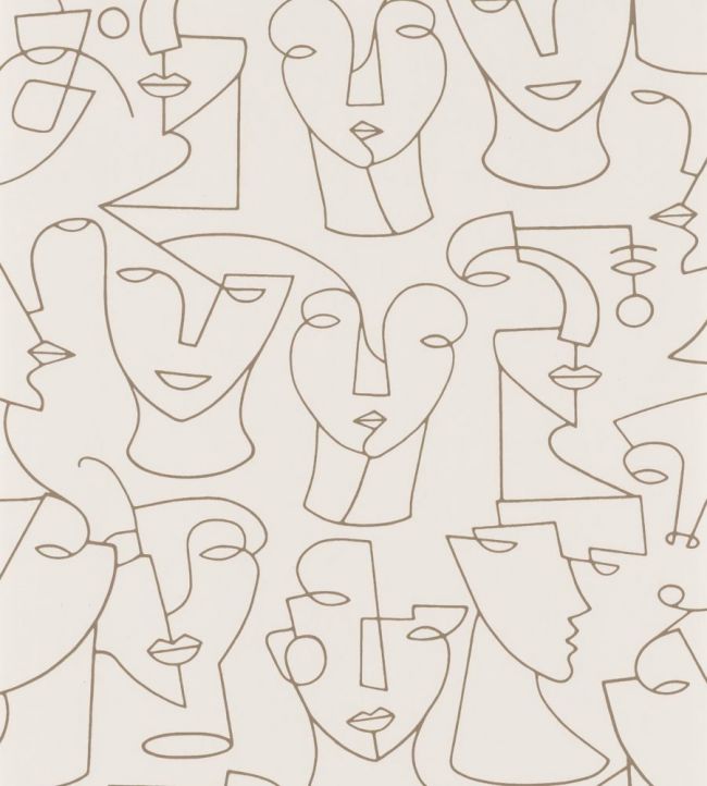 Stylized faces are drawn in a continuous line. The chalk technique with raised, mat or iridescent ink accentuates the pattern to give it relief. The pattern Portrait has been drawn entirely by hand by Casadeco's Creative Studio.