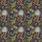 A scandi style flower and leaf all over pattern with stylised natural elements in sweet silhouette.