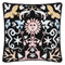 Charming cut out style motifs, flowers and butterflies are flock printed in black onto a digitally printed ground in this graphic cushion by Christian Lacroix. Reversing to a tiled pattern digital print with Christian Lacroix lettering. This stylish interior cushion is completed with piped edging.