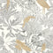Lush nature blooms in this most radiant of patterns. Forget the idea that black and white is dull. Here, they are combined with golden touches that brighten up the room.