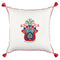 This light, yet expressive deco pattern is the epitome of folk design. With a delicate brocade on the front and an embroidered M letter monogram on the back, the linen cushion is hand finished with red whip stitch piping and red cotton tassels. Filled with 100% duck feathers filling. Composition: 100% Linen