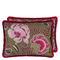 This large rectangular cushion features fully embroidered bold scale striking renderings of roses with geometric leaves and foliage. In rich jade and moss tones, this contemporary floral cushion reverses to a delicate mirrored pattern digitally printed onto cotton. This rich embellished cushion is accentuated by the luxurious brush trim in green on all four sides. Material: 100%Co