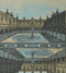 Atmospheric and opulent, this captivating paper displays a dramatic and iconic scene. Designed in 1965 by Robert Nicholson and originally hung horizontally, we believe a famous 1644 Wenceslaus Holland etching of Londons Royal Exchange inspired the design. The addition of a shimmering Gold represents the wealth of Exchange Square.