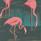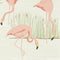 Fabulous flamingos pose elegantly in shallow waters on this wallpaper, which is surface printed for a hand painted look. The chalky ground and metallic bulrush highlights add a characterful twist to feature walls. Available in lively colourways.