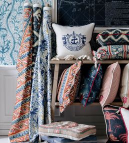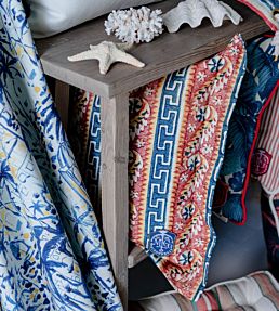 Following Hellenic history back to some of its North-Eastern roots, the Samothraki fabric emphasises the exotic wilderness of some of GreeceÕs remote places. Samothraki is an ancient Thracian pattern created in warm red shades and washed out sea blue hues. Made of natural cotton, Samothraki is recommend to be used for soft furnishings and curtains or blinds.