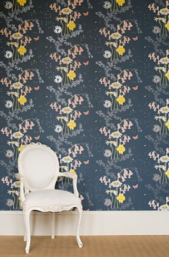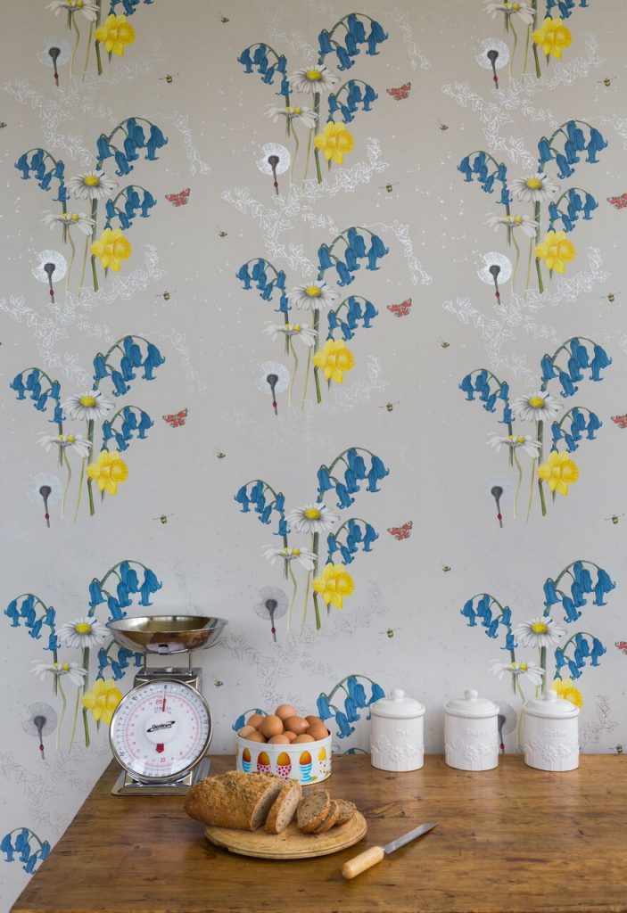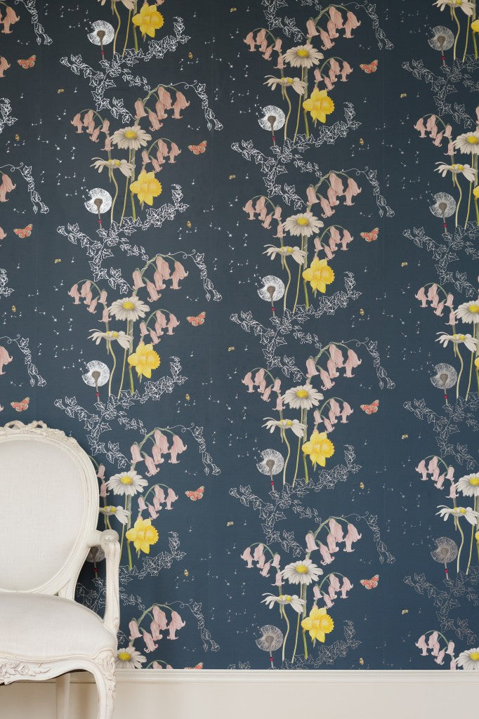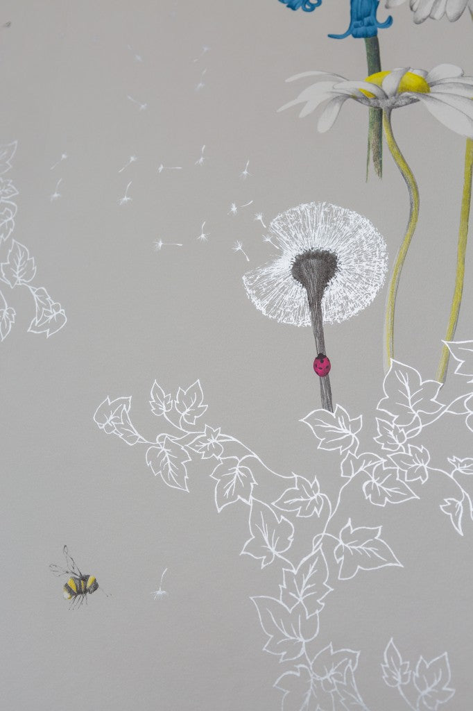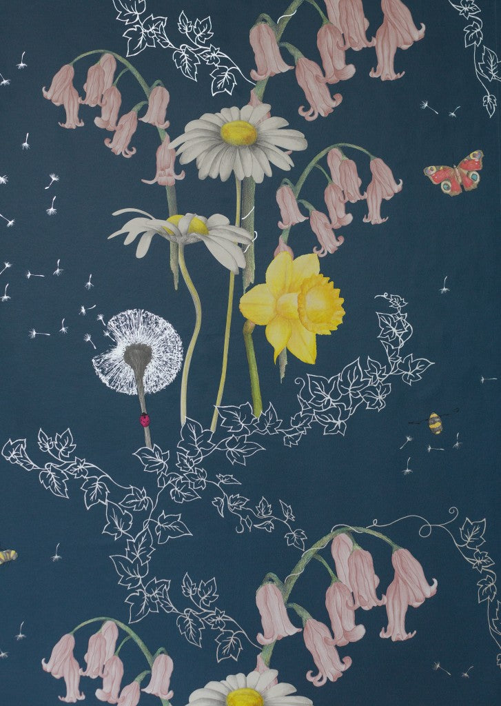 British garden flowers come in every shape, size and colour and our Secret Garden design captures just a few; bluebells, dandelions, daffodils and daisies, entwined with ivy and surrounded by bees and butterflies.