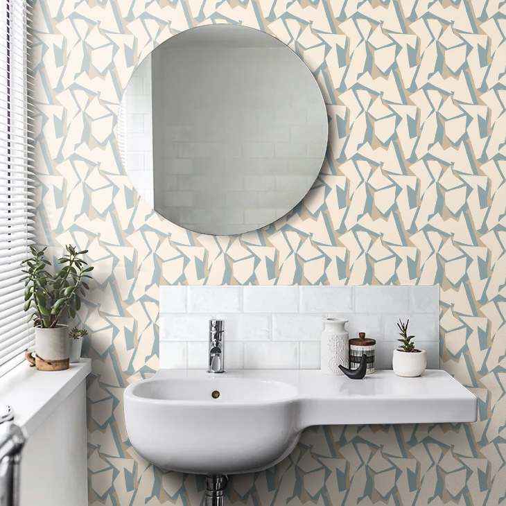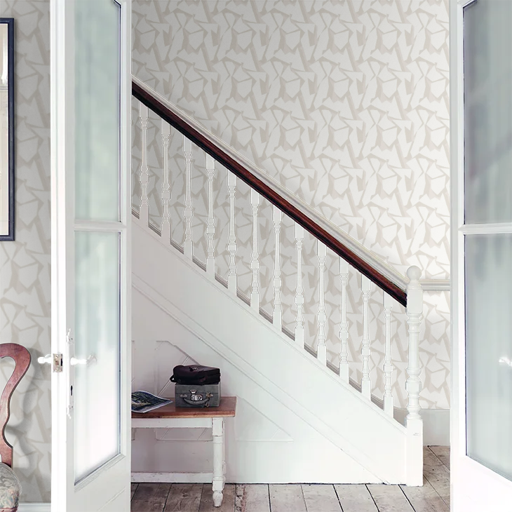 Inspired by the shattered pieces of a broken ceramic vase, Shatter is a powerful repeating geometric pattern that creates a mesmerizing abstract formation across the wall. Rhythmic and dynamic, its tonal colourways evoke minimal modernity.